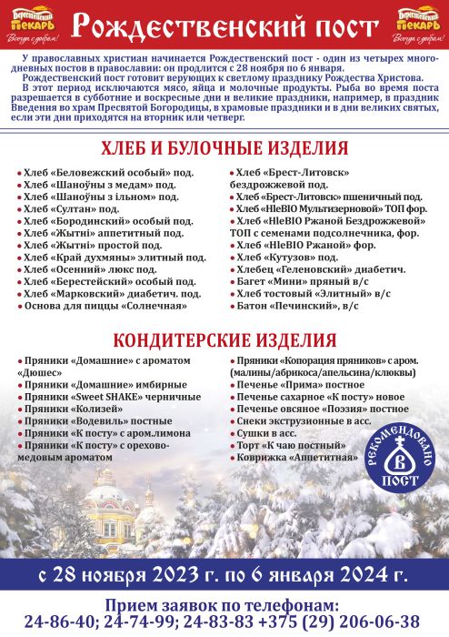 28,30 лістапада, 2,3,4,5,7,9,10,12,14,16,17,19,23,24,30,31 снежня дазволена гарачая ежа з алеем, а таксама рыба;