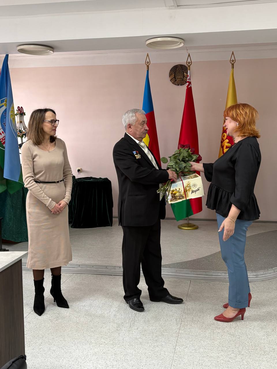 В присутствии коллектива руководство и председатель первичной профсоюзной организации почествовали их, в знак глубоко уважения и почтения к воинскому подвигу.